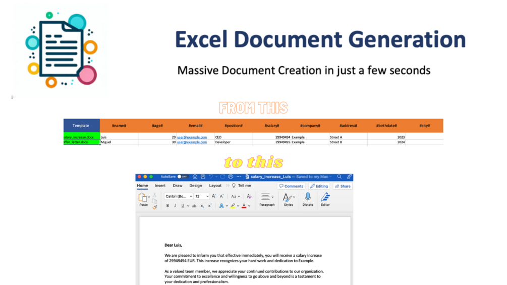 With the Excel To Word Document Creation macro, you can generate documents in just a few clicks.